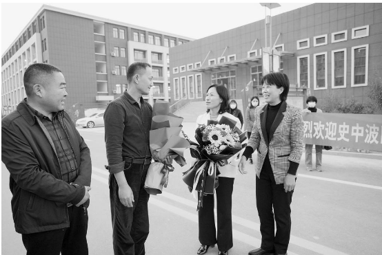 让他意外又惊喜的是,自己一直牵挂着的学生正列队在校门口迎候,为他鼓掌、喝彩;成武县教育局局长马华武、红十字会党委书记王霞、卫健局工会主席方礼艳等也手捧鲜花,与他握手致意。那一刻,尽管他已身心俱疲,内心却无比温暖。