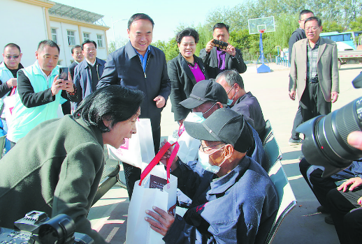 10月23日,市慈善总会、郓城县慈善总会联合菏泽市帮办志愿者协会在郓城县双桥镇敬老院举办“情注夕阳”慰问活动。市慈善总会为老人们带来了羽绒服、保温杯、米面油等物品,郓城县民政局为老人们送来了棉衣、棉被,市帮办志愿者协会为老人提供了面包、毛巾等。记者 艳粉 摄