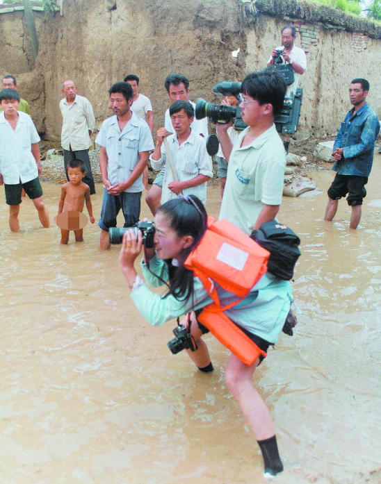 1996年和2003年两次洪峰突袭菏泽,又是她,像一个战士,背起相机,火速赶到抗洪现场。