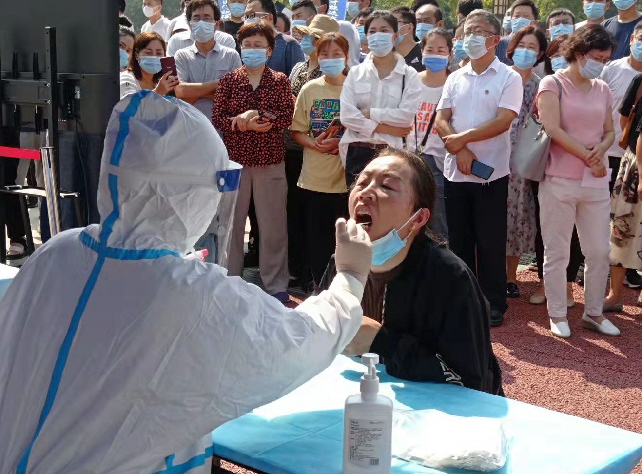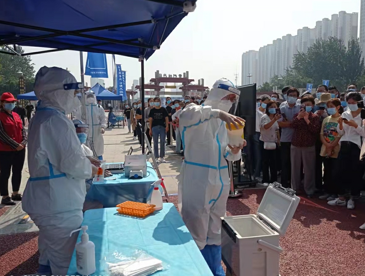 上午10时左右,演练开始,受检人员持提前备好的健康码,携带手机、本人居民身份证,佩戴口罩,保持1米安全距离排队等候。然后,在工作人员引导下进行体温测量,并登记个人信息。随后医务人员对居民采集咽拭子样本,并负责样品收集、包装、核对、装箱。样本采集后,由医务人员负责送检,整个演练过程自然流畅、井然有序,达到了预期效果。