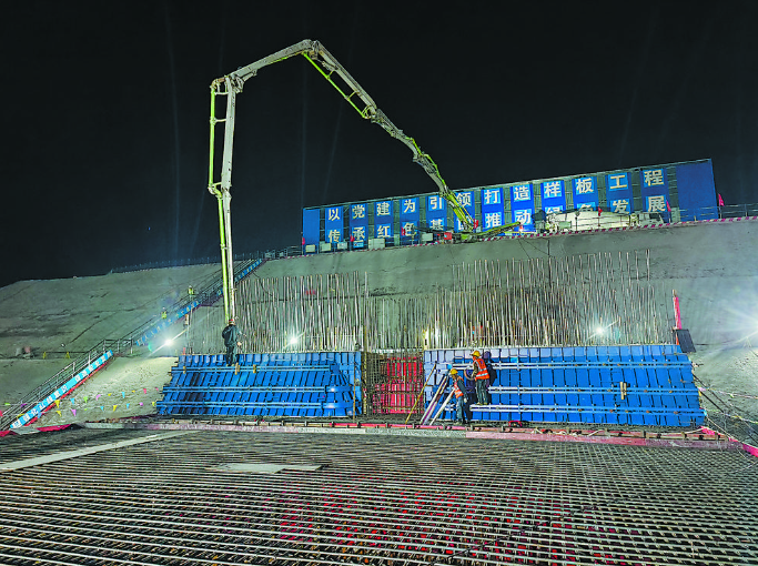 近日,由中建筑港承建的新万福河复航二期侯楼至关桥段项目施工五标段(SG5)船闸工程主体结构的第一块底板浇筑工作已圆满完成。作为全线首个大规模混凝土浇筑节点,此次施工将为后续工程建立标准化操作范本,严格规范施工流程并确保质量可控。首件闸室底板的圆满浇筑,标志着新万福河五标段项目建设全面提速。计划于6月10日完成远调码头PHC桩施工、闸首PHC桩施工及下闸首底板浇筑;6月30日完成下游分流坝施工;7月30日完成涵闸施工。