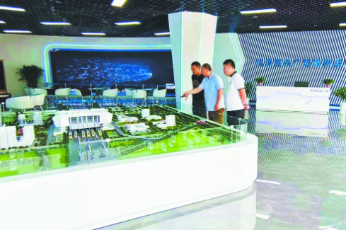 近日,记者在位于中华东路紫金国际广场一楼的菏泽高铁广场城市展厅看到,展厅的装修工作已经完毕,工作人员已进场办公,极具时尚感与未来科技感的风格让人眼前一亮,沙盘和视听大屏幕前部分客户正在参观。工作人员介绍,伴随着展厅的装修完成,菏泽高铁广场招商工作全面启动。记者 李亚楠 许顺顺 通讯员 付 静 摄