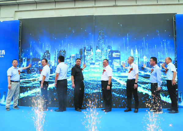 7月16日,天安夏威夷暨菏泽万达广场新营销中心盛大启幕。宽敞阔气的营销中心为到场来宾呈现出了最好的感官体验,方寸之间无不彰显匠心。天安建信集团常务副总王汉宁表示,作为本土房地产企业,天安的发展凝聚着天安人对于产品匠心、服务匠心的不懈坚持,凝聚着社会各界的关注和支持。今后,斗志昂扬的天安人将更积极投身到城市建设中,与菏泽共同发展。图为项目有关领导共同上台启动大屏,开启营销中心的大门。