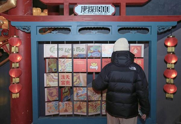 家住山东德州的李璐恒大年初一就和家人一起前往了《唐探1900》的取景地乐陵影视城。吸引他的不仅有影视城里高度还原的“三藩市”,还有沉浸式活动和有趣的非玩家角色(NPC)。“进入影视城,每人会领到一本集章手册和仿真美钞,按手册提示解密集章,集满3个章能兑换小礼品。可以去找NPC盖章,但需要与他们互动,比如唱歌。”李璐恒说。