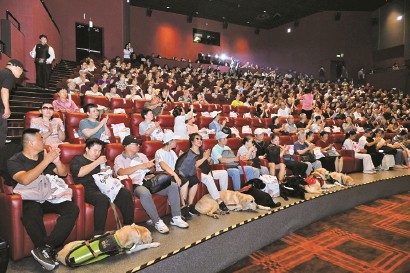 电影院里,进来了几只导盲犬。