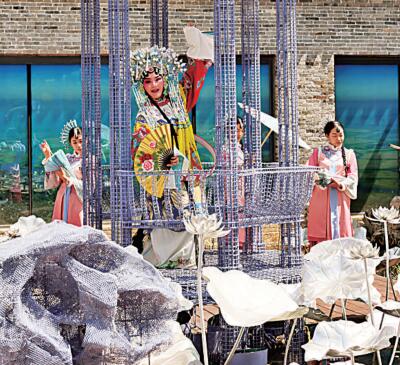 河北秦皇岛一处旅游街区,戏曲演员在为游客表演。曹建雄摄/光明图片