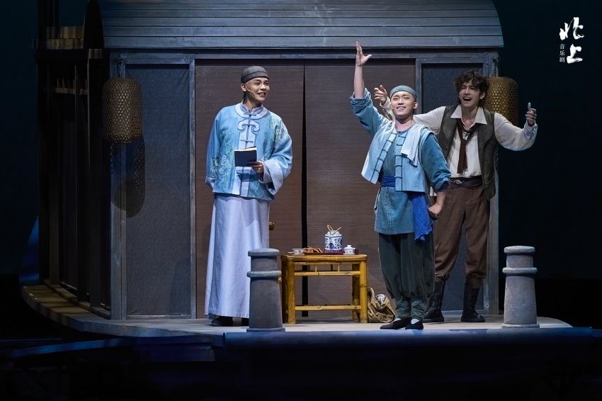 作为北京文化艺术基金2023年度资助项目、“大戏看北京”展演剧目,音乐剧《北上》由中共北京市委宣传部、北京市文化和旅游局指导,北京广播电视台出品,讲述了20世纪初漕运总督府翻译谢平遥与来华考察的意大利人“小波罗”等一同踏上沿京杭大运河北上的旅程,历经磨砺,终获曙光,在乱世洪流中建立起深厚友谊。