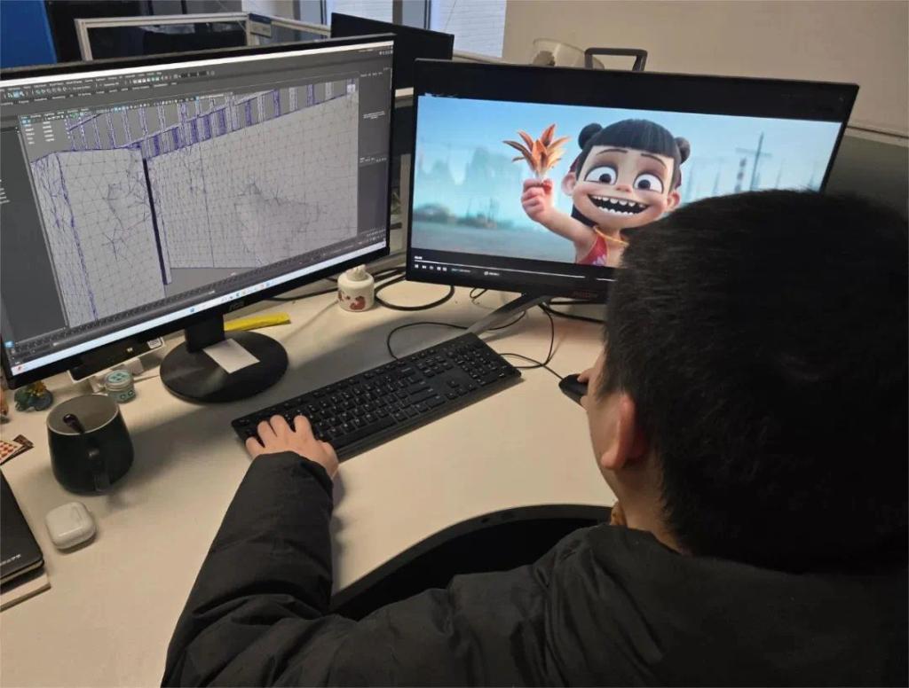 解算是三维动画特效中的关键步骤,目的是让影片视觉呈现更加生动。常州华彩映画影业有限公司技术团队负责解算影片中哪吒、敖丙、龙王等角色的衣服、武器、毛发等。“我们需要捕捉、研判角色的动态数据,解算出哪吒的混天绫等变化效果,使其看上去更逼真。”企业负责人梁奕黄说,细节解算的难点在于如何精准表达导演想要的意境和情绪。比如,无量仙翁的衣服和胡子讲究仙气飘飘,一个镜头往往需要磨两三个星期。