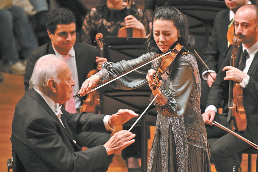 尽管指挥家克制的力度与速度选择并未让第四乐章“暴风雨”迸发出呼啸而至、凌厉迅捷的能量,但丝毫没有影响末乐章“牧歌”乐段的澄澈纯净、春风拂面。如此高级的艺术效果在第二晚开场的韦伯《奥伯龙》序曲中得到了再现。在遒劲有力的主部主题之后,梅塔做出了短暂的留白,当弦乐声部以缥缈轻盈的姿态唱出如暖阳般柔和的副部主题时,没有任何语言能够形容那种从音流中溢出的幸福感。与其将之学术化地表达为德奥浪漫主义音乐传统的醇正魅力,不如说是一位耄耋老者面对人生旅途充满眷恋和喜悦的深情回眸。