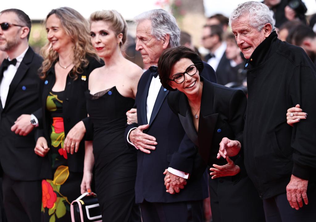 5月18日,在法国南部小城戛纳举行的第78届戛纳国际电影节上,法国文化部长达蒂(右二)出席主竞赛单元影片《腓尼基计划》首映式。新华社记者 高静 摄