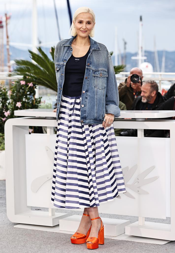5月20日,在法国南部小城戛纳举行的第78届戛纳国际电影节上,法国导演朱利娅·迪库尔诺亮相主竞赛单元影片《阿尔法》拍照式。新华社记者 高静 摄