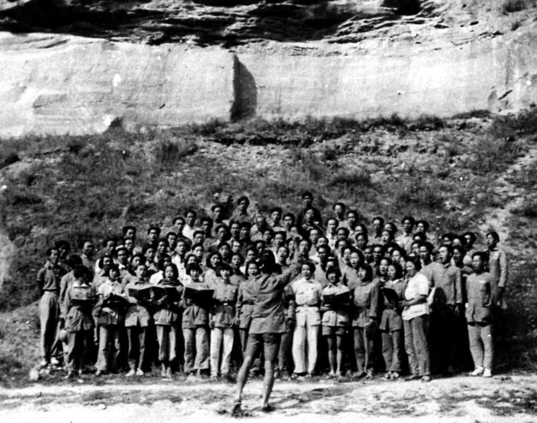 冼星海指挥鲁艺合唱团排练《黄河大合唱》。中国艺术研究院艺术与文献馆藏