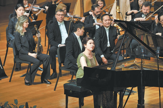 上半场,钢琴家罗维联袂乐团,率先奏响《黄河》。这部脱胎自《黄河大合唱》,由殷承宗、储望华等音乐家改编的协奏曲问世几十年来久演不衰,已成为国际舞台上中国交响乐的代表作品。《黄河船夫曲》《黄河颂》《黄河愤》《保卫黄河》4个乐章逐次递进,以沉着雄浑的触键和节奏,把抗日救亡的记忆、民族复兴的光明推向最高峰。