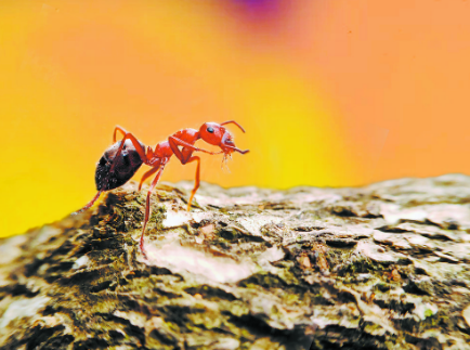 蚂蚁是一种非常细小的爬行动物,每年春天,天气转暖时,蚂蚁就从“地下室”沿着树干搬到它们的“空中楼阁”。记者通过长时间的跟踪拍摄,终于拍摄到一张蚂蚁上树的照片。照片中的蚂蚁呈深褐色,“庞大”身躯下长着六条毛茸茸的“小脚”,用微距镜头在自然状态下观察蚂蚁爬行,就仿佛发生在童话世界一般生动、有趣。