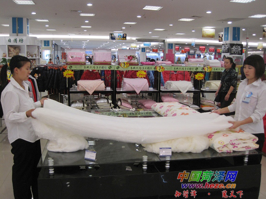 菏泽银座四楼情丝绵绵专柜可现场为客户制作蚕丝被,让您以更优惠的价格购买到货真价实的蚕丝被,让昔日帝王皇妃钟爱的蚕丝被轻松进入您的家庭。同时,因其高档和舒适,也是馈赠亲朋的理想礼品。欢迎惠顾。咨询电话:13561318866