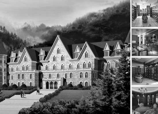 北极冰蓝莓酒庄建筑风格为欧式古典酒堡,酒庄集产品研发、果酒酿造、观光旅游、休闲度假、经贸洽谈为一体。是“中国北极第一天然绿色酒庄”