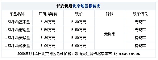 近期爱卡汽车网走访北京新兴快马长安汽车4S店获悉,目前长安悦翔在店内暂时没有任何优惠幅度,按指导价销售,并且现车不是非常齐全。详情请见下表:
