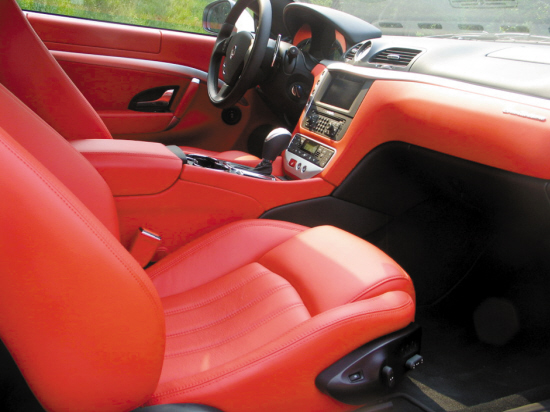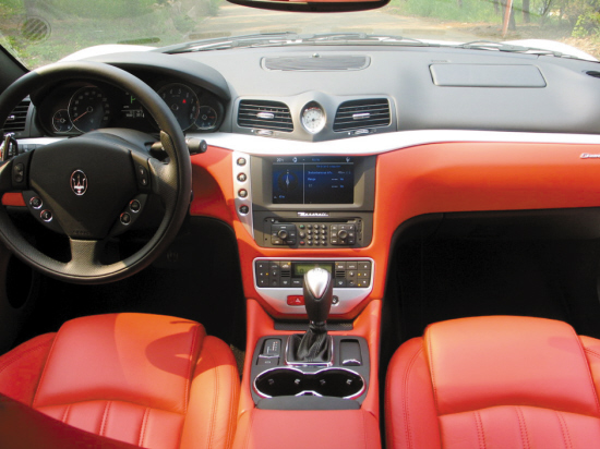 GranTurismo(图库 论坛)的内装陈设强调造型与科技感,大部分采用鲜红色的皮革包覆,辅以面积颇大的铝合金饰板,细节则保有相当的古典风味。