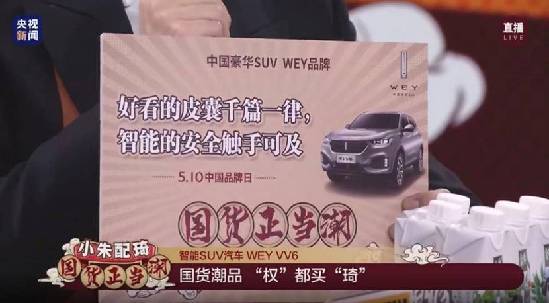 在5月10日中国品牌日直播活动上,WEY VV6作为直播中唯一的汽车品类代表,由央视名嘴朱广权亲自力荐,整场直播整车订金订单达到 7,473笔,超4.4万人参与抢购限时秒杀的VV6半价车,预计销售金额近12亿元。此外,6月正值“WEY品牌超级直播月”,在直播月和“618电商节”,WEY品牌为新老用户准备了多重好礼。WEY品牌正在以创新营销、用户服务与产品力的融合,为中国汽车品牌的向上突破提供新范本。