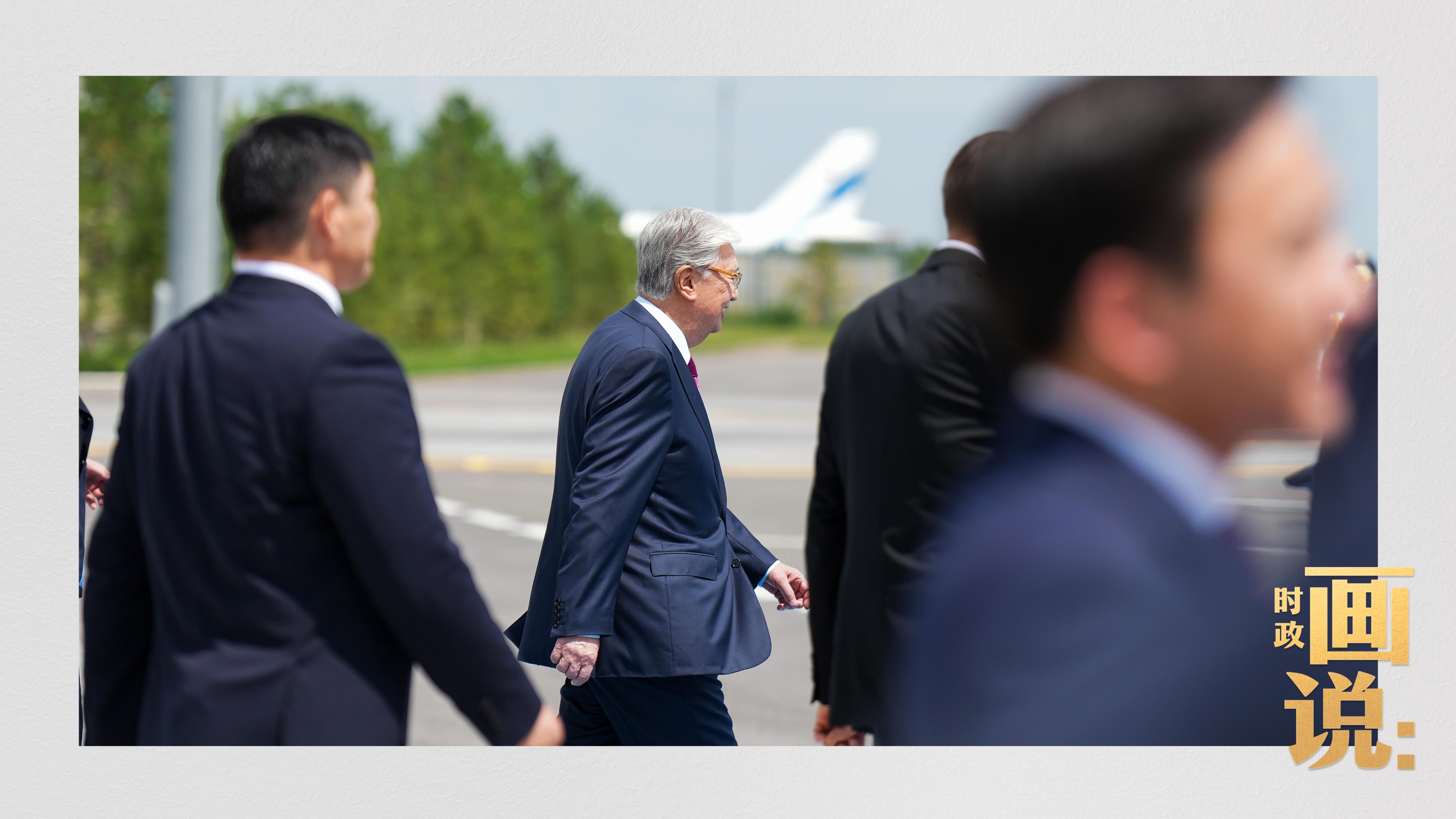 哈萨克斯坦总统托卡耶夫亲赴机场迎接习近平主席。