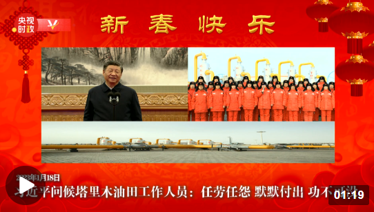 位于新疆塔克拉玛干沙漠的中石油塔里木油田是我国陆上第三大油气田,也是我国“西气东输”的主力气源地,为南疆和下游沿线15个省区市民生用气提供保障。习近平同塔里木油田公司轮南油气储运中心西气东输第一站克拉集气区连线。节日期间大家能轮休吗?你们在外过年,年货都准备好了吗?习近平问得仔细,现场员工一一作答。总书记叮嘱他们站好岗、供好气,保障人民群众度过一个欢乐祥和的春节。