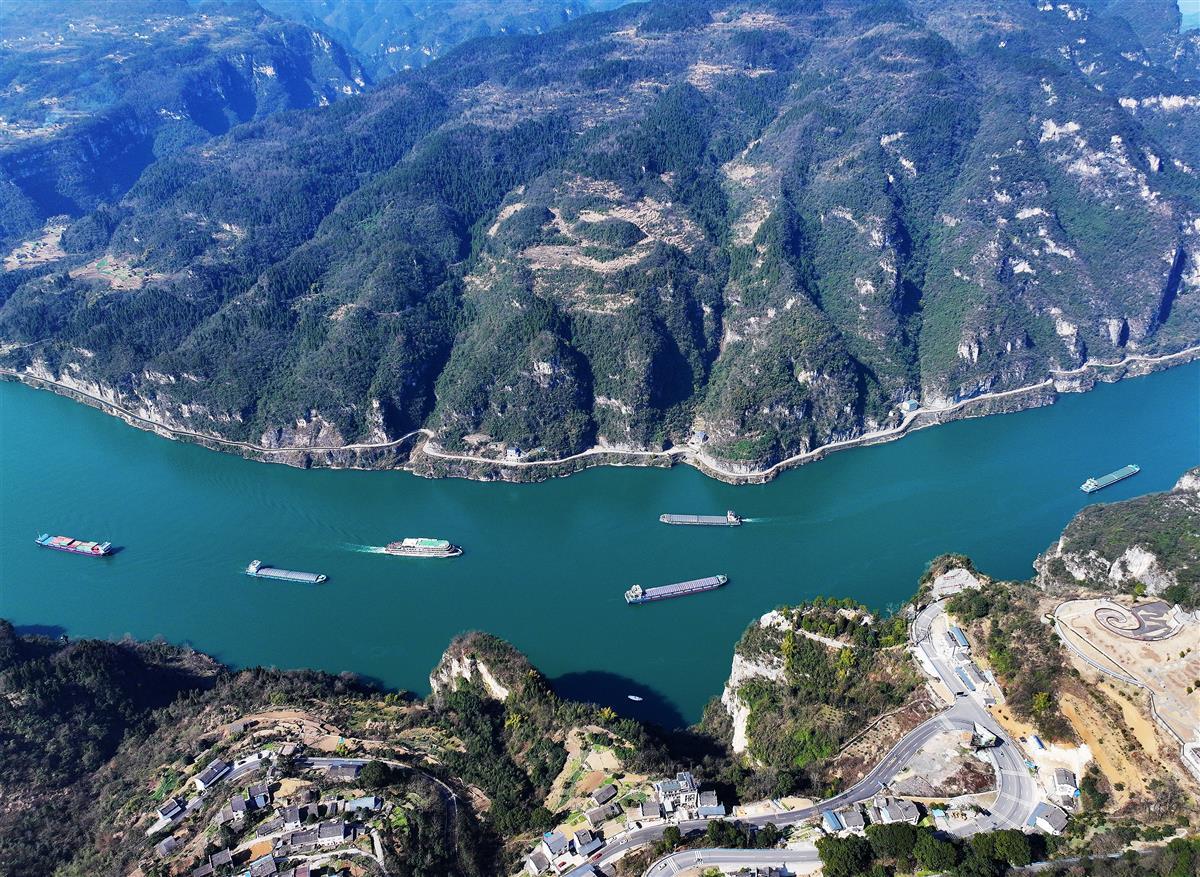 2月17日,长江宜昌西陵峡水域,客货船舶往来穿梭、川流不息,上演龙年水运航业复工复产“忙春图”(视界网 黄善军 摄)