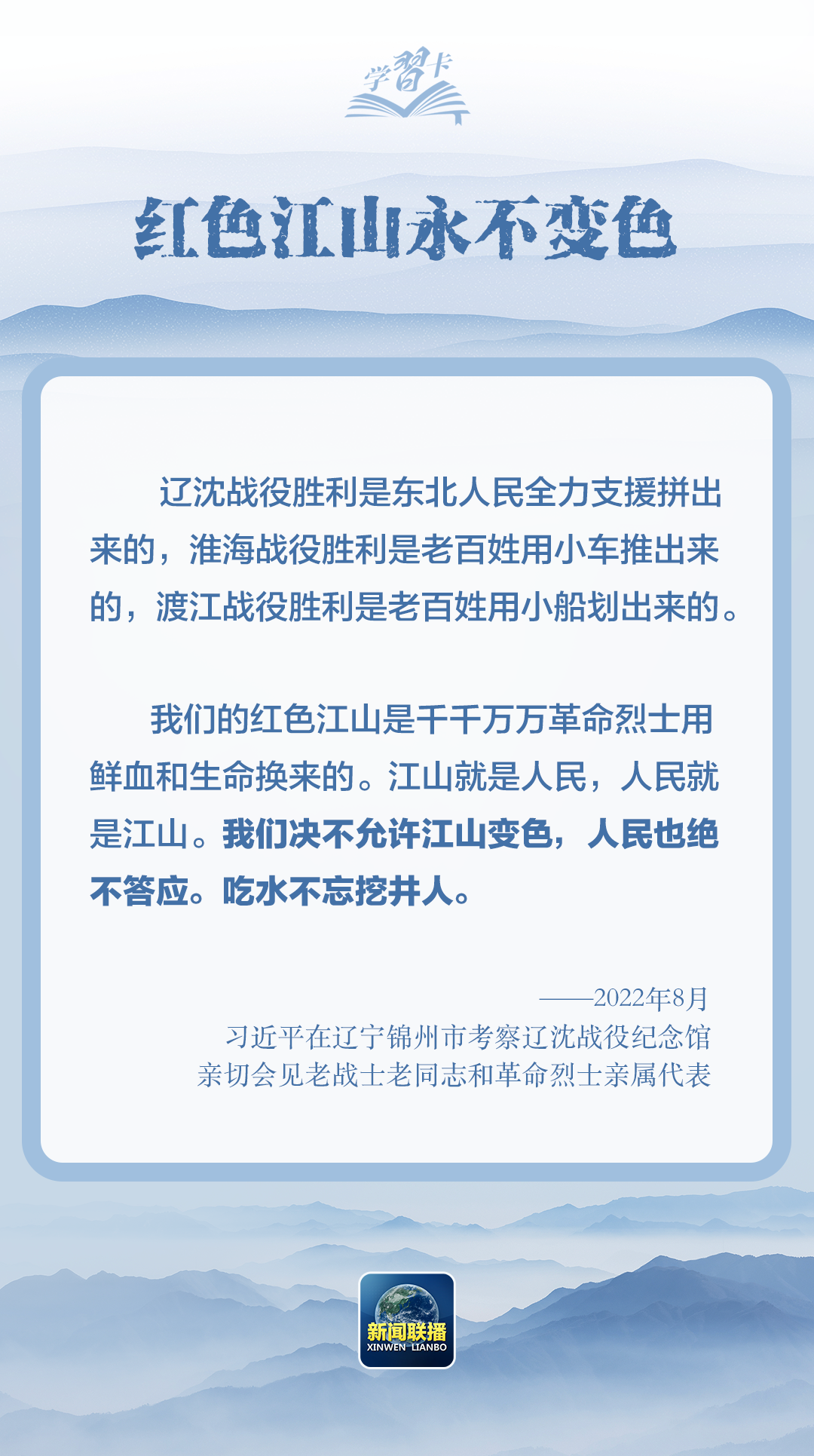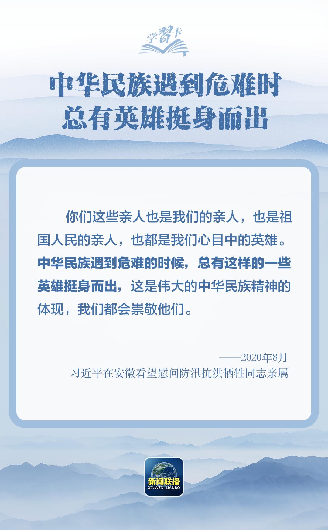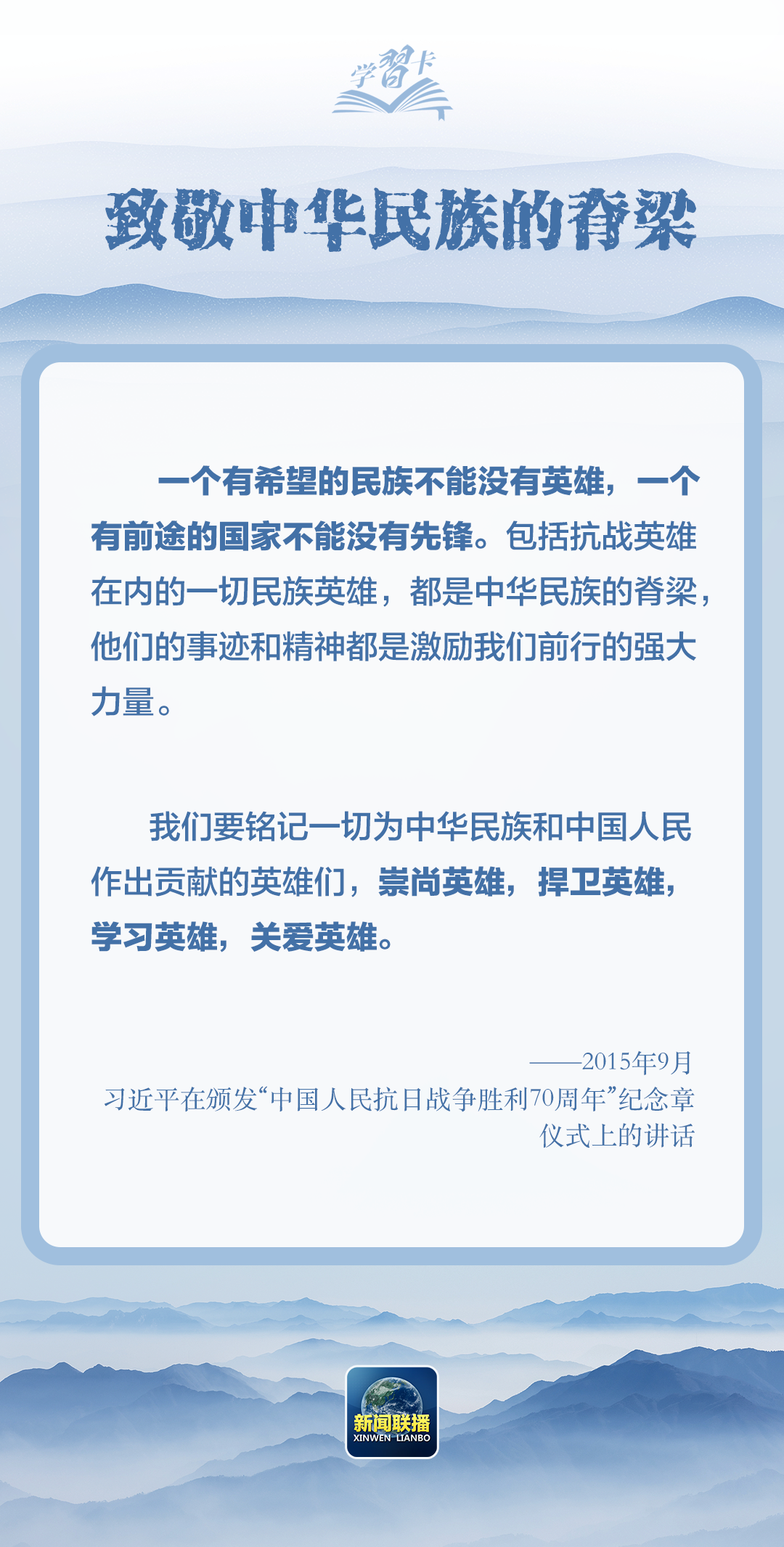 “对一切为国家、为民族、为和平付出宝贵生命的人们,不管时代怎样变化,我们都要永远铭记他们的牺牲和奉献。”