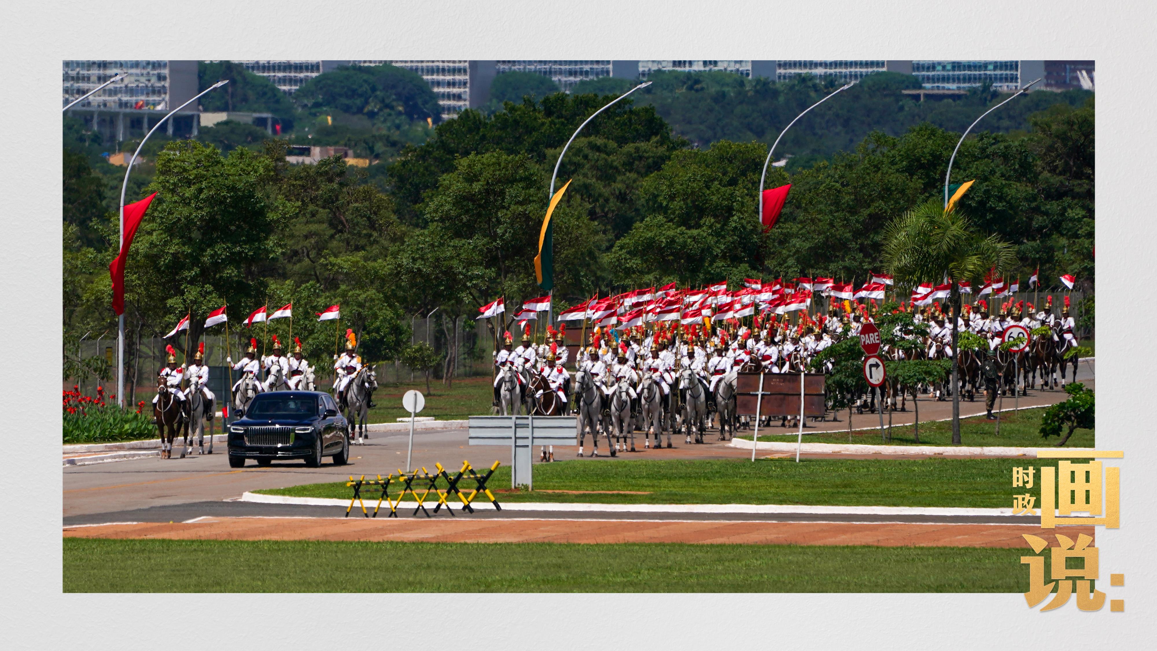 当地时间11月20日,习近平主席乘车抵达位于巴西利亚的巴西总统官邸,出席卢拉总统举行的欢迎仪式。