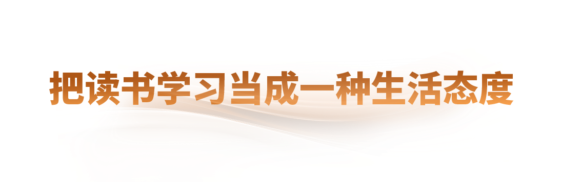 在福建宁德,他组织当地县委书记参加地委学习中心组读书班,扛着自己的书带大家一起学、一起读;在浙江,他要求绍兴领导干部背诵《兰亭集序》《钗头凤》,增进对当地历史文化了解;担任中央党校校长,他提出“真正把读书学习当成一种生活态度、一种工作责任、一种精神追求”;党的十八大以来,他多次以“勤学、修德、明辨、笃实”八字箴言鼓励年轻一代“珍惜韶华,潜心读书”……