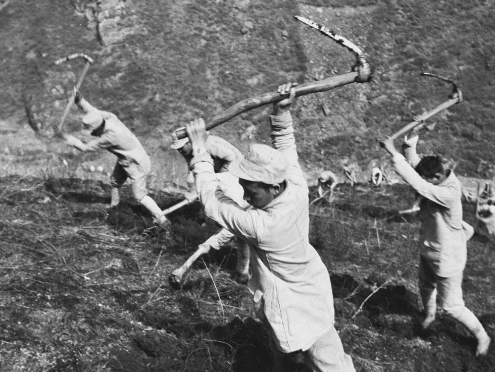 1937年的山西平型关战役,是八路军开赴抗日前线后的首次大捷,也是中国抗战史上第一次大胜利,大大鼓舞了全国人民的抗日信心。图为八路军115师战士在平型关公路两侧伏击日军。