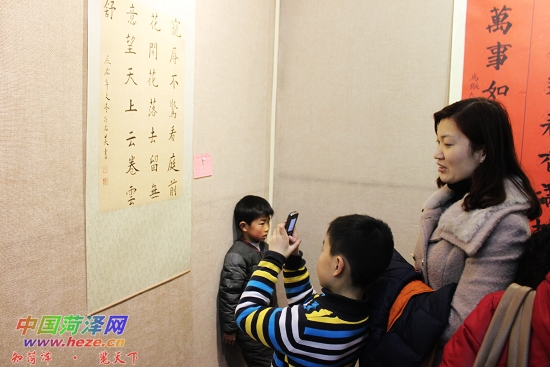中国菏泽网消息 (记者 陈洪健) 3月24日,首届“亿联·时代奥城杯”菏泽市少儿书法大赛优秀作品展开幕式暨颁奖典礼在曹州书画院举行,众多青少年书法爱好者闻讯前来参观展览。