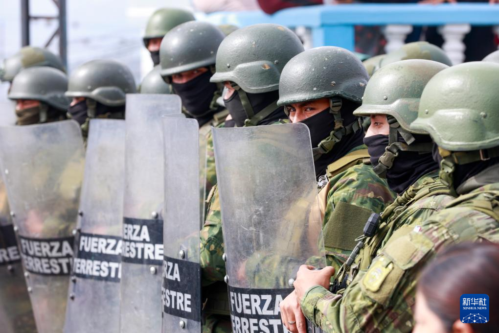 9月16日,在厄瓜多尔首都基多,武装部队人员维持秩序。新华社发(里卡多·兰德塔摄)