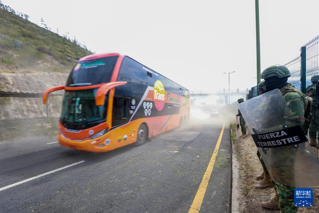 9月16日,在厄瓜多尔首都基多,武装部队人员在公路旁维持秩序。新华社发(里卡多·兰德塔摄)
