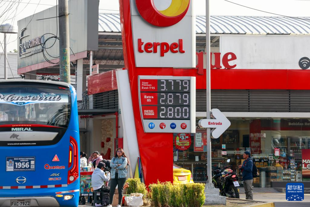 这是9月16日在厄瓜多尔首都基多拍摄的一处加油站的燃油价格显示屏。新华社发(里卡多·兰德塔摄)