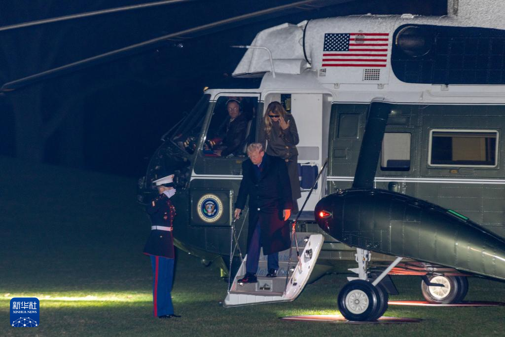11月30日,在美国首都华盛顿白宫,美国总统特朗普和夫人梅拉尼娅返抵白宫。新华社记者 胡友松 摄