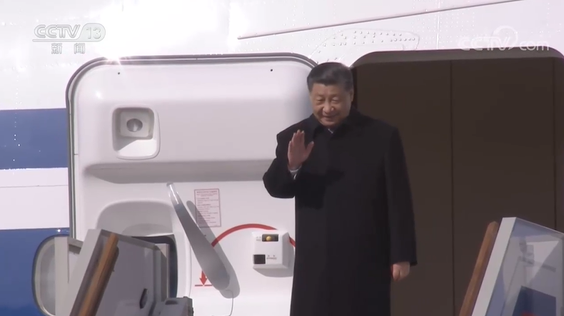 当地时间3月20日下午,国家主席习近平乘专机抵达莫斯科,应俄罗斯总统普京邀请,对俄罗斯进行国事访问。