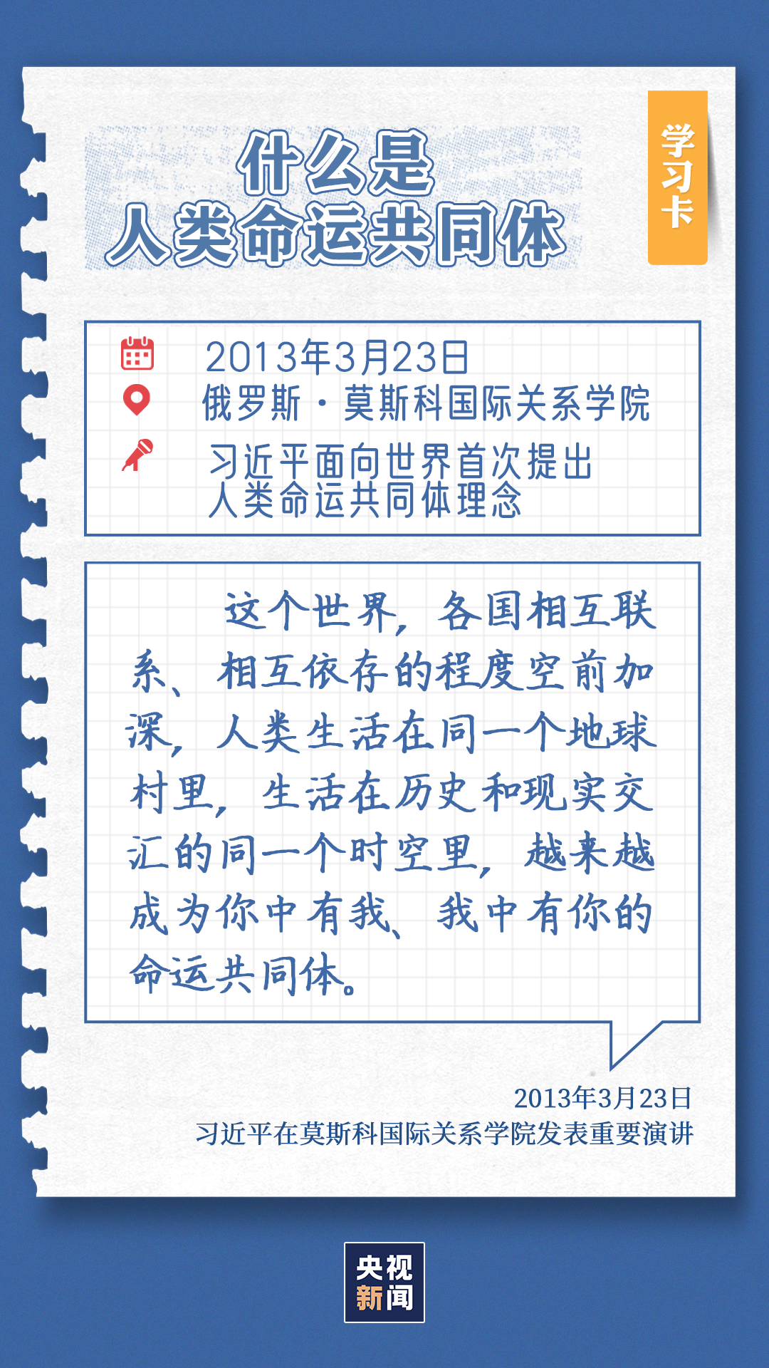 2013年3月,习近平就任中国国家主席后的首访国就是俄罗斯。那次出访期间,习主席首次向世界提出人类命运共同体理念。十年来,习主席在多个场合多次倡导构建人类命运共同体。什么是人类命运共同体?如何构建人类命运共同体?点击“学习卡”了解↓