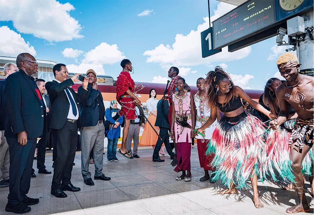 △2023年10月6日,多国驻肯使节在肯尼亚内罗毕的蒙内铁路内罗毕站观看文艺演出。
