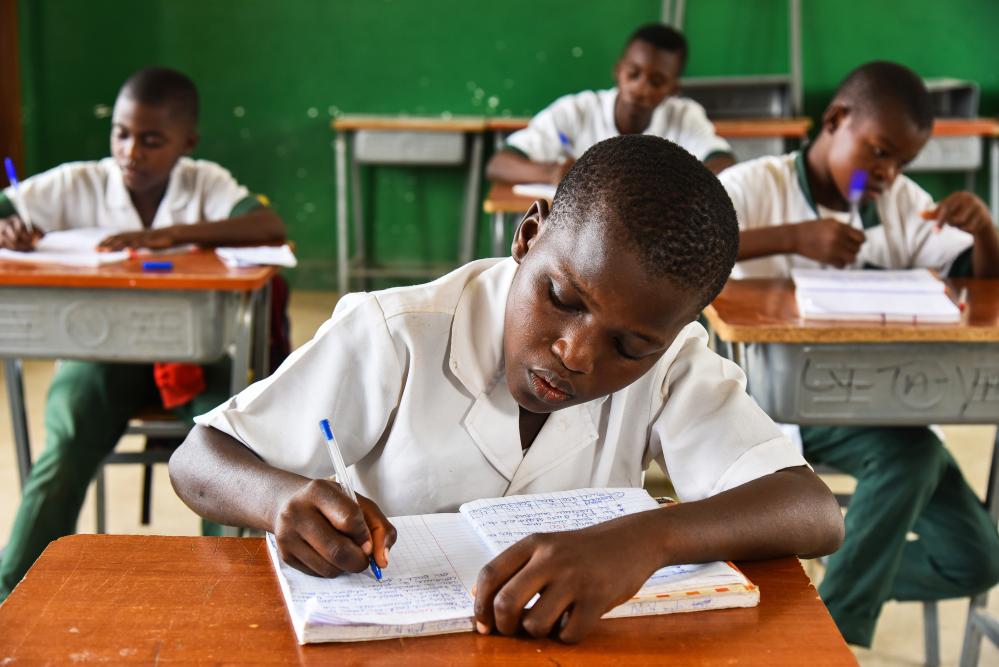 2023年1月10日,在喀麦隆滨海大区亚巴西,一名学生在中国援建的农业职业技术中学上课。新华社发(科普索摄)