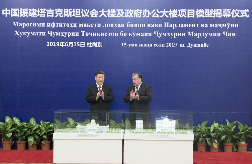 时光回到五年前,2019年6月15日,国家主席习近平在杜尚别同塔吉克斯坦总统拉赫蒙会谈。会谈后,两国元首共同出席中方援塔议会大楼、政府办公大楼项目模型揭幕仪式。