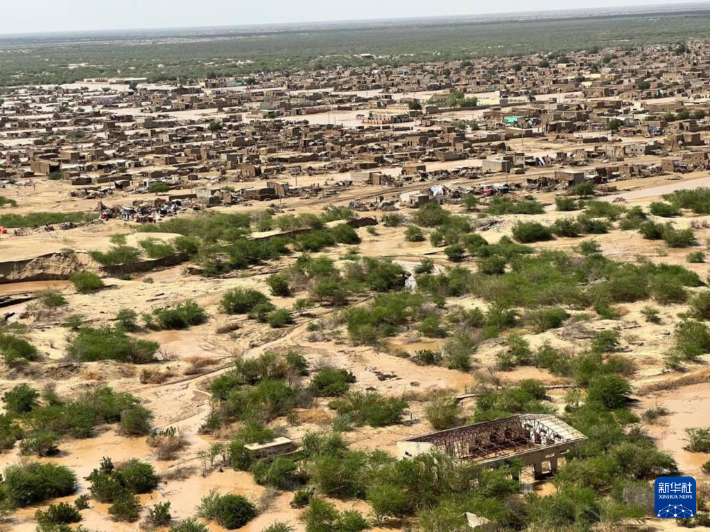 这是8月26日在苏丹红海州拍摄的溃坝洪水灾区(航拍照片)。新华社发(苏丹主权委员会供图)