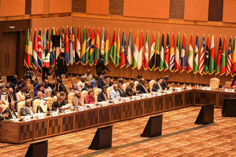 这是2024年1月19日在乌干达首都坎帕拉拍摄的不结盟运动第19次峰会会场。新华社发(阿佳拉·纳瓦达摄)