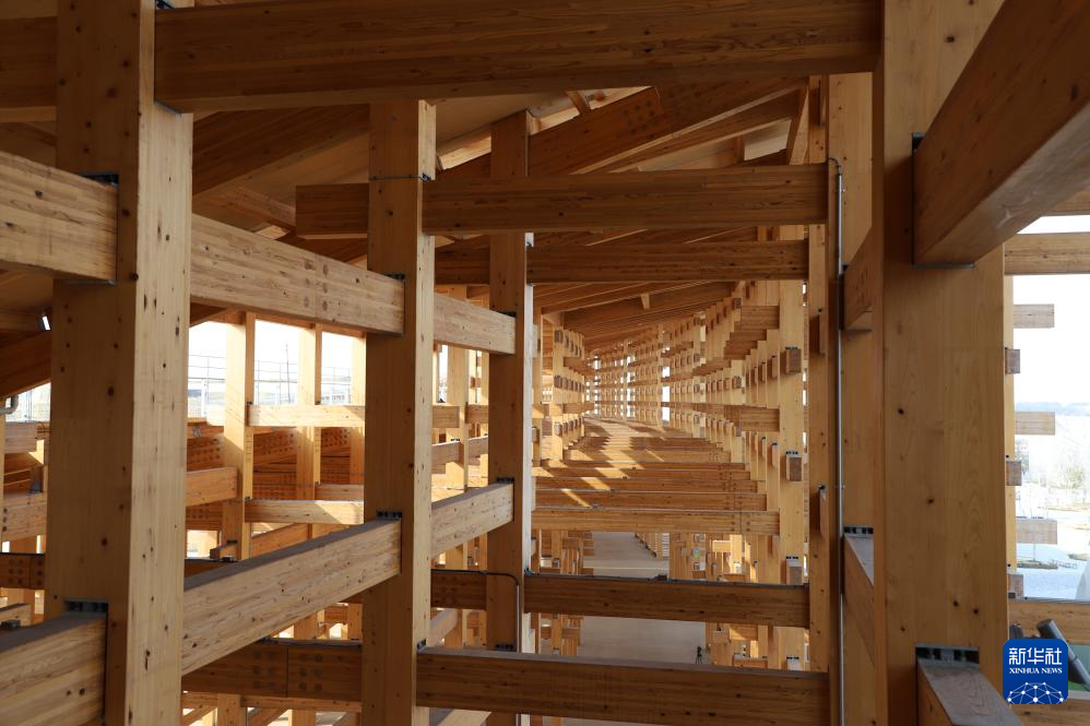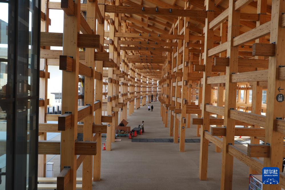 为吸引游客,大阪世博园区还在空间设计方面做了独特尝试。其中最引人注目的莫过于标志性的“环形大屋顶”结构。这座封闭圆环状的木质屋顶将各国展馆环抱在内,一条步行通道连接各区域。