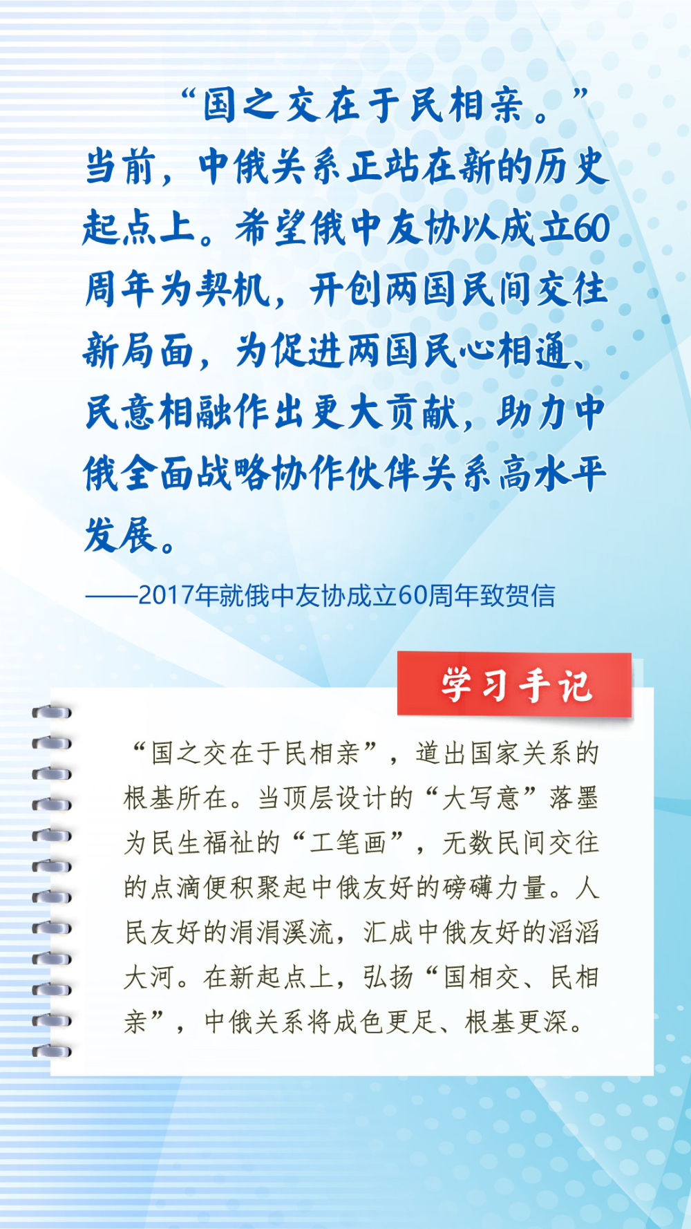 中华民族和俄罗斯民族都有悠久的历史、古老的文明、灿烂的文化,都是伟大的民族。近年来,习近平主席常常引用中国诗词古语、俄罗斯谚语名言等,寄语中俄关系发展和全人类和平与发展。这些重要论述,蕴含对文明、历史的深邃思考,指引着新时代的中俄关系不断向前,为世界百年变局中的人类文明进步事业指明方向。