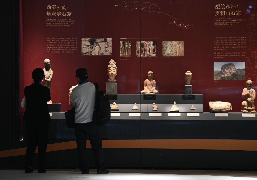 2024年5月18日,观众在陕西历史博物馆参观“从长安出发:丝路申遗成功十周年主题展”。展览集中展出中国、哈萨克斯坦、吉尔吉斯斯坦三国的精品文物,涉及丝绸之路沿线的城市规划、宗教信仰、商品贸易、艺术生活等方面,讲述丝路沿线国家和人民在谱写人类文明、续写人类发展篇章中的艰难历程和辉煌成果。