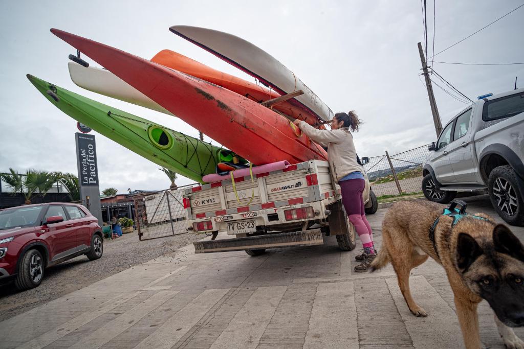 7月30日,在智利瓦尔帕莱索大区康孔市,一名女士准备向安全地带撤离。新华社发