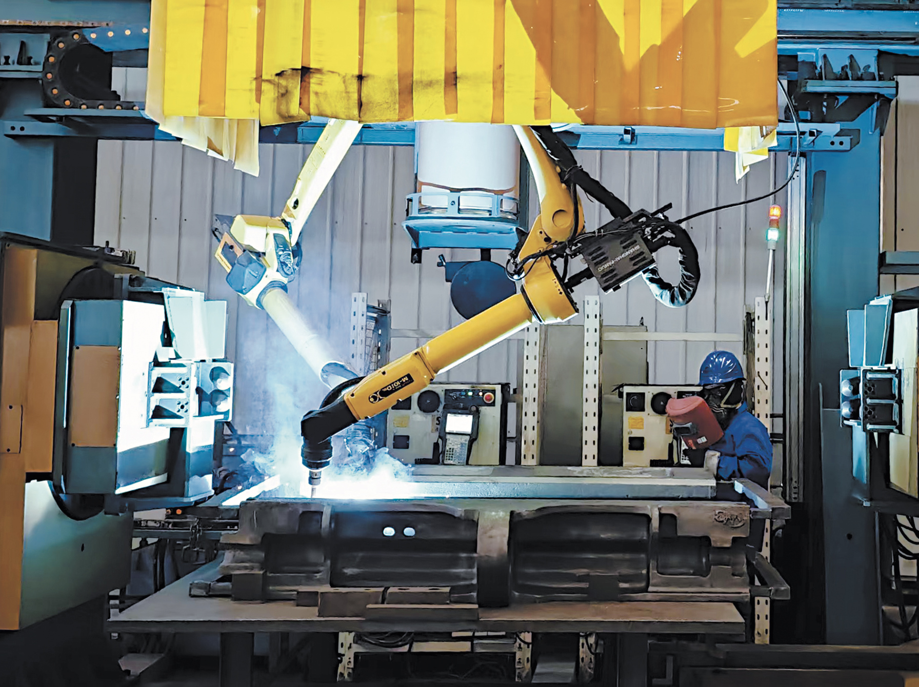 11月27日,单县久鼎机械智能化生产装备技改项目生产车间,智能化机械手臂正在进行焊接作业。据了解,该技改项目总投资10.2亿元,于今年3月启动实施,9月底完成并投产运营。项目采用智能化设备共80余台(套),设备更新率达到90%以上,大幅提升了企业产品创新研发和生产制造水平,产品附加值大幅提高,年可增加销售收入15亿元以上。