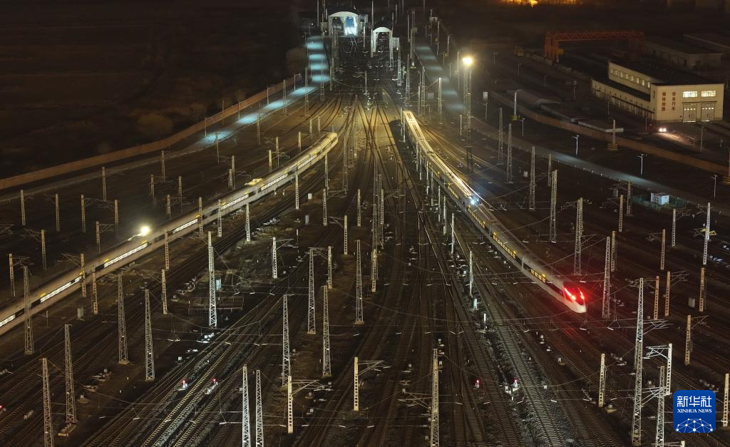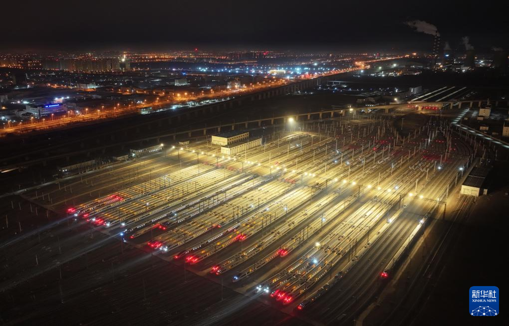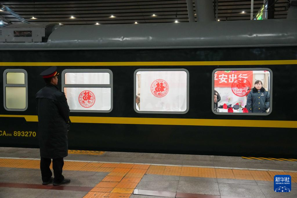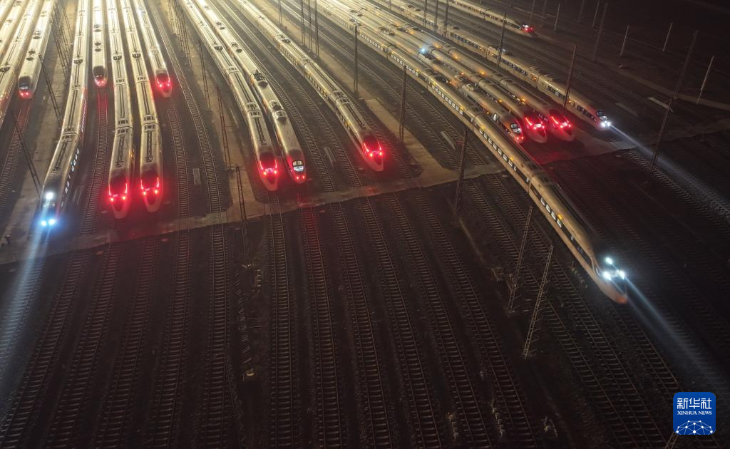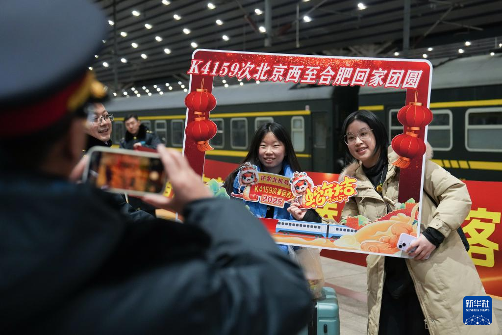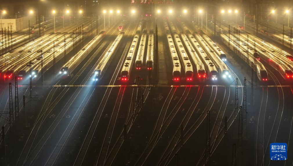 1月14日0时02分,北京西至合肥K4159次列车缓缓驶出北京西站。这是北京地区开出的2025年春运首趟旅客列车。