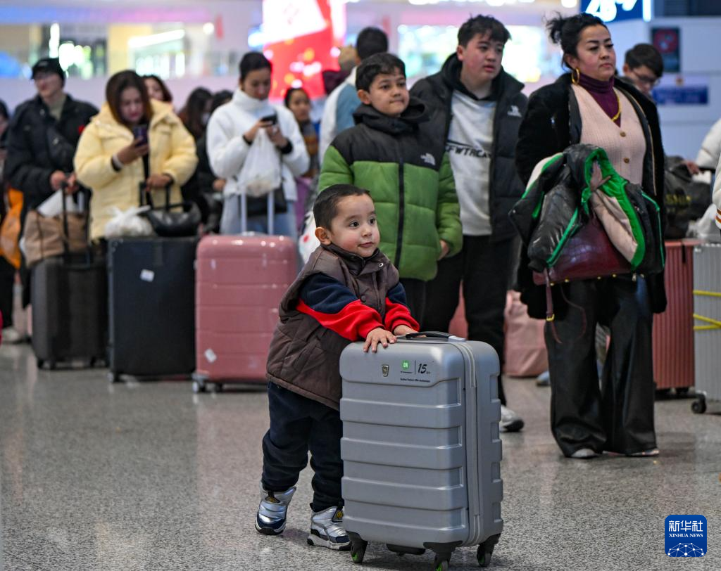 1月14日,旅客在乌鲁木齐站等待检票乘车。