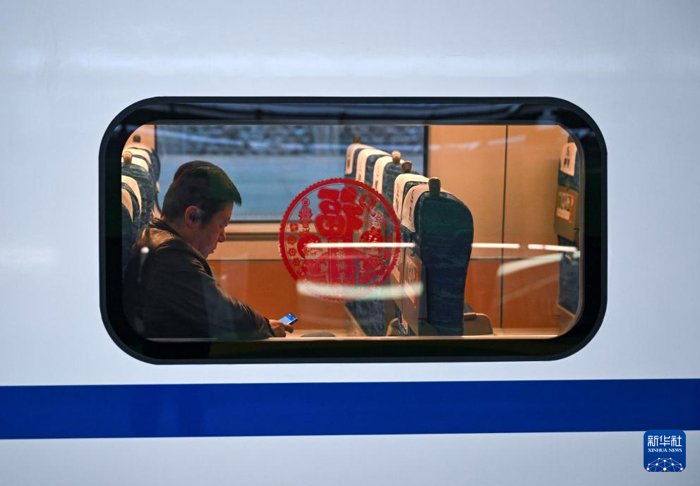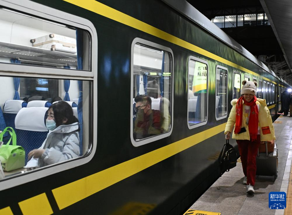 1月14日,乘客乘坐西宁至呼和浩特东的D2822次动车组列车出发。